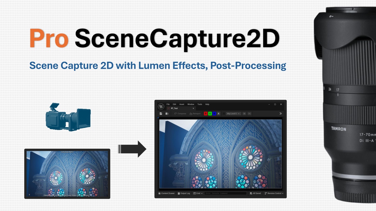 --------------------------------------------------------- Scene Capture 2D with Lumen Effects, Post-Processing ⁉️Have you ever been frustrated when using SceneCapture2D, wondering why the render target output looks so different from what you see in the viewport? No matter how much you tweak the settings, the results still don’t match your viewport! Pro SceneCapture2D is here to solve these problems for you! With full support for Lumen and Post-Processing effects, it delivers much better rend
