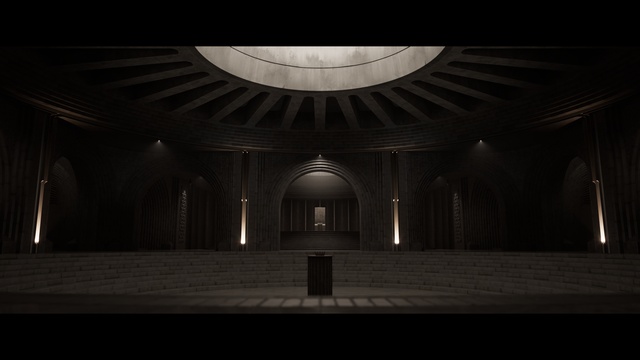 Throne Room - Defined by its stark concrete architecture and moody atmosphere. The space is dominated by imposing forms, with a feature ceiling that provides the primary source of ambient lighting. Bronze sculptures on plinths are placed around the room, adding a touch of elegance to the raw, industrial aesthetic. This pack is also semi-modular for added flexibility, and excels as a ready-to-use scene for projects looking to evoke a dark, atmospheric tone with a bold architectural focus.