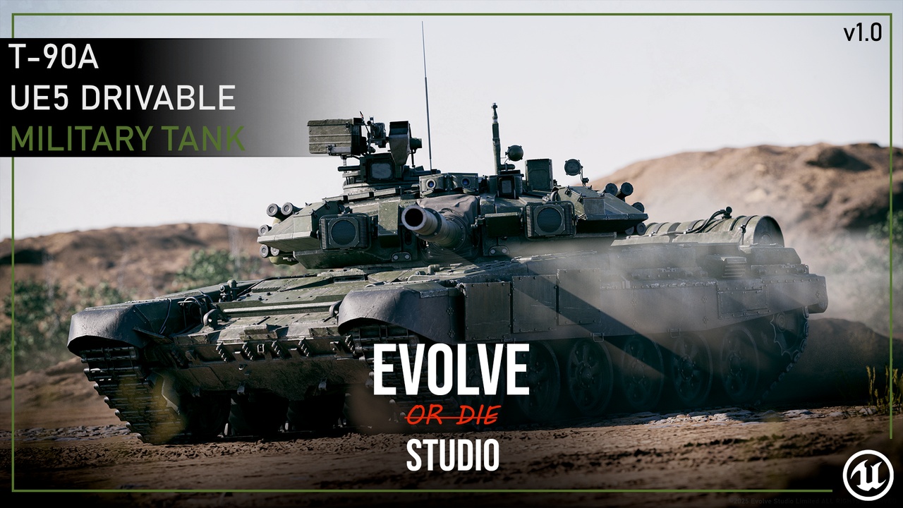 T90A Drivable Battle Tank will fit any military realistic-style game or cinematic movie. Very easy to use for any user level.The asset was done by the AAA game pipeline and will raise your project quality to a new level.This UE5 blueprint will definitely save your time just a lot!Make sure to check the asset details here:📄Documentation | 🎥Video Overview | 🎮Free playable build | 🎥Sequencer tutorialSupport & Inquiries:Discord | ArtstationOther drivable vehicle assets:Type99 Drivable Battle